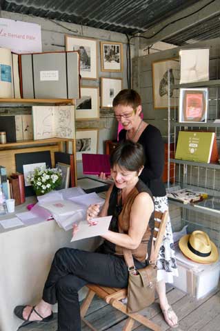 Édition originale du poème d’Arrabal traduit en occitan par Sèrgi Combes, illustrée d’un pliage original et d’un dessin à l’encre rouge paraffiné de Martine Lafon. Tirage unique à 16 exemplaires sur Vélin d’Arches présentés sous chemises de soie rouge et signés par l’auteur à la saison des pêches en 2009, (25 x 19 cm).