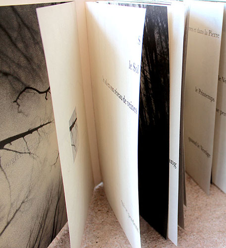 Cette « œuvrelivre », sous forme de flipbook poétique et photographique, imaginée par Gabriela Morawetz, mise en œuvre par l’artiste, Bernard Soria et Patricia Dupuy, est limitée à 15 exemplaires et quelques hors commerce à Avrilly, pour Le Renard Pâle Éditions, au printemps en 2018.